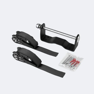A robust bracket of steel with a stainless steel bolt, 2 ratchet straps and extra mounting set